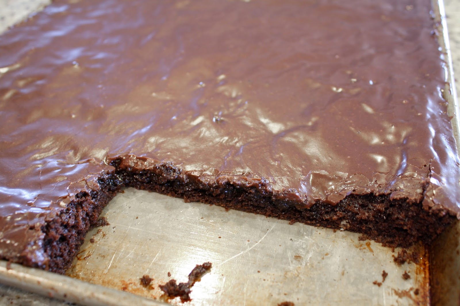 This recipe has been in my family for forever. I can remember my mom making this cake and bringing it into my 4th grade classroom to celebrate my birthday. That was back in the day when homemade treats were allowed. This cake is perfect if you need to feed a lot of people. You can also bake it in rounds to built a layer cake, pouring a little bit of frosting between each layer, then letting the frosting on top drizzle down the layers. MMMmmm!